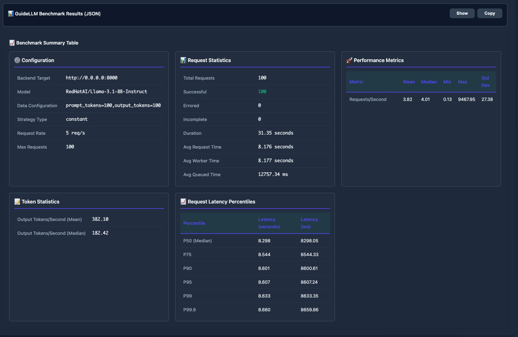 - Latency percentiles (P50, P75, P90, P95, P99)