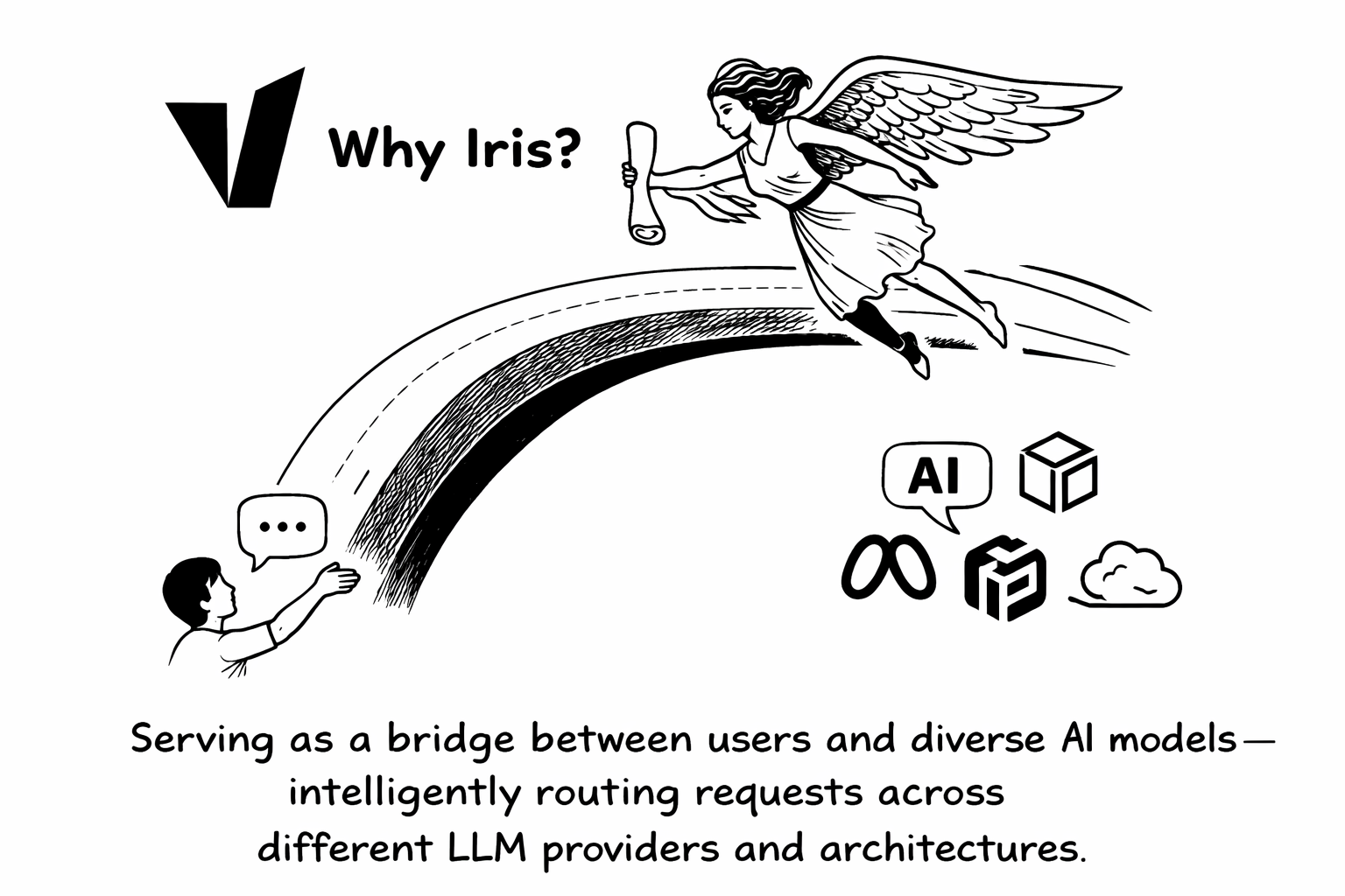 In Greek mythology, Iris (Ἶρις) served as the divine messenger who bridged the realms of gods and mortals, traveling on the arc of the rainbow to deliver messages across vast distances. This symbolism perfectly captures what vLLM Semantic Router v0.1 achieves: a bridge between users and diverse AI models, intelligently routing requests across different LLM providers and architectures.
